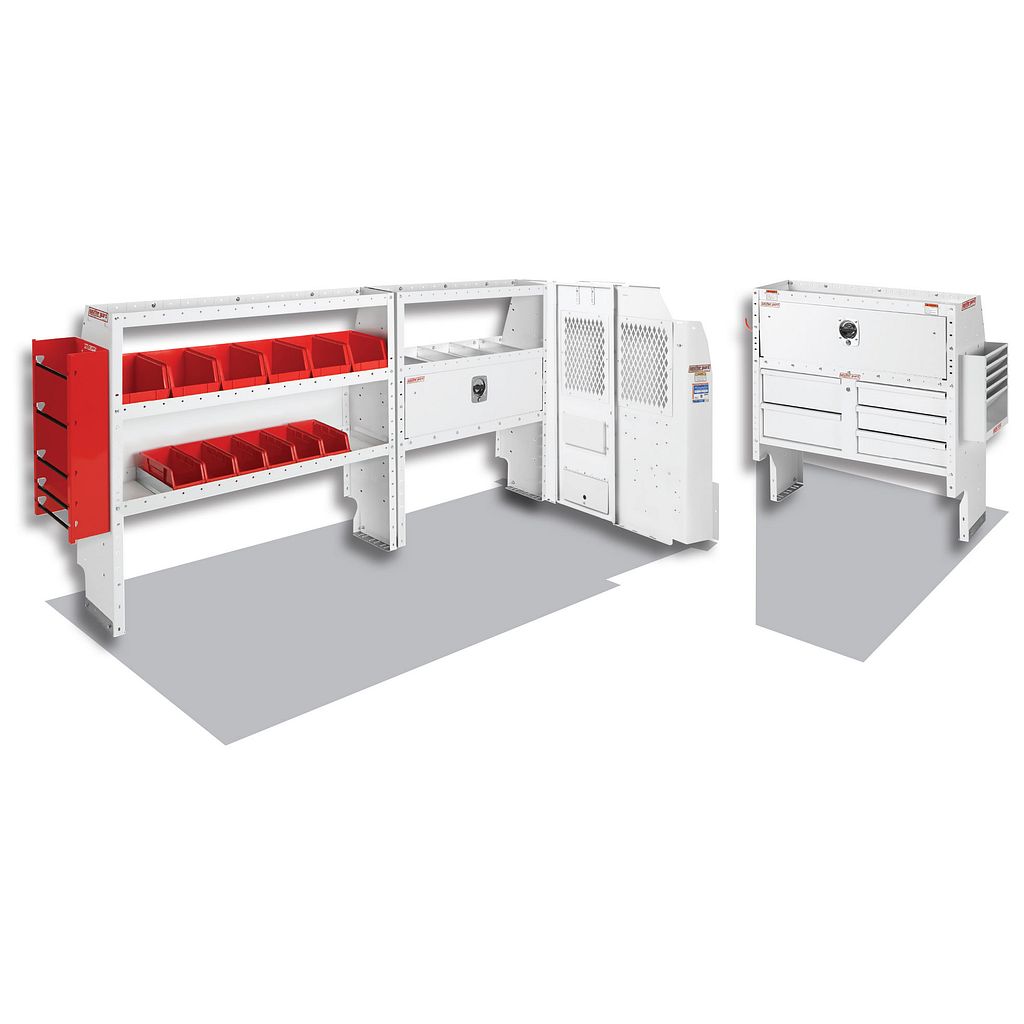 Includes everything you need for a complete upfit package, including bulkhead, driver/passenger side shelving, accessories, and installation kit all crafted specifically for your trade.