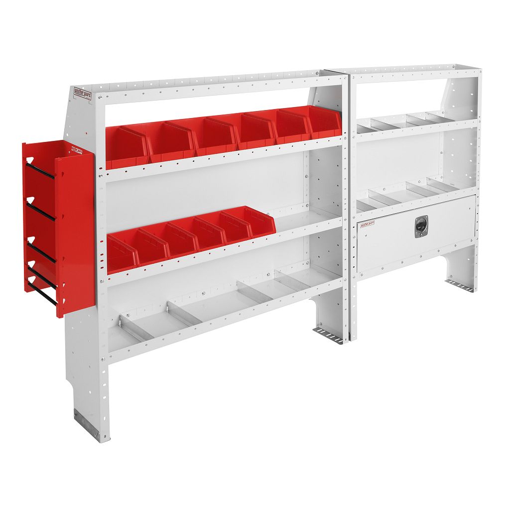 Includes everything you need for a complete upfit package, including bulkhead, driver/passenger side shelving, accessories, and installation kit all crafted specifically for your trade.
