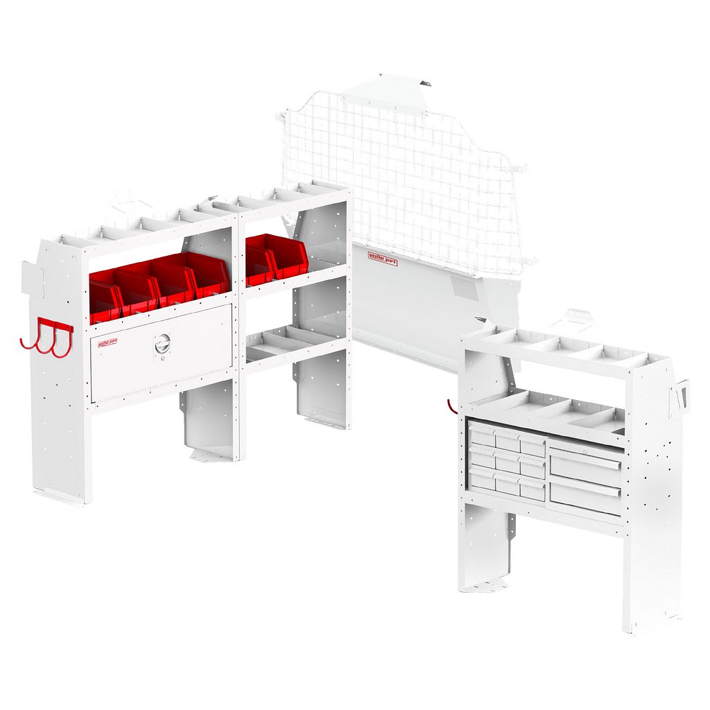 Includes everything you need for a complete upfit package, including bulkhead, driver/passenger side shelving, accessories, and installation kit all crafted specifically for your trade.