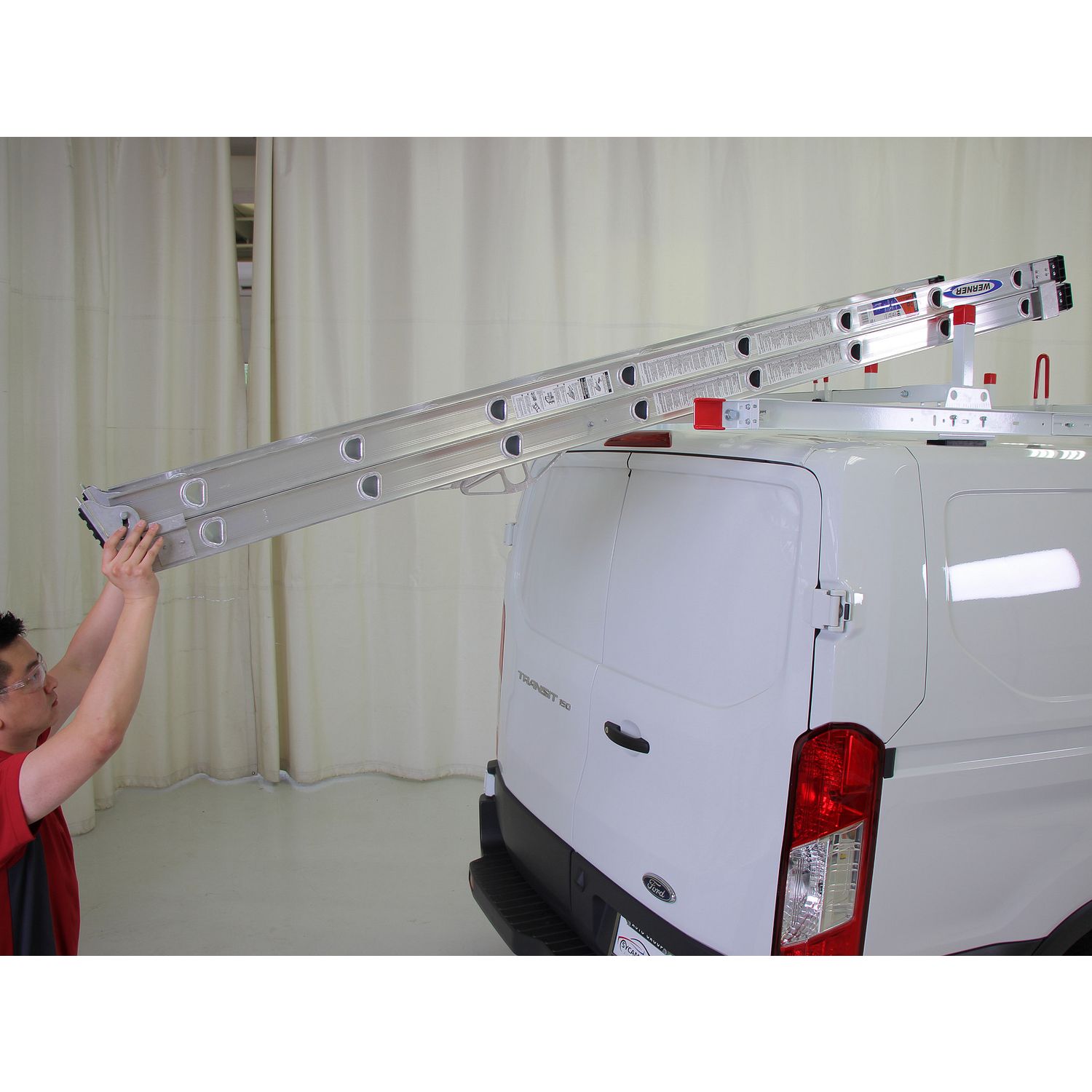 The Model 23004-3-01 GlideSafe™ Load Assist System is a van roof rack accessory for the WEATHER GUARD 205-3 and 216-3 All-Purpose Steel Van Racks that protects the back of the van while providing assistance in loading and unloading materials and equipment from the van cargo rack.