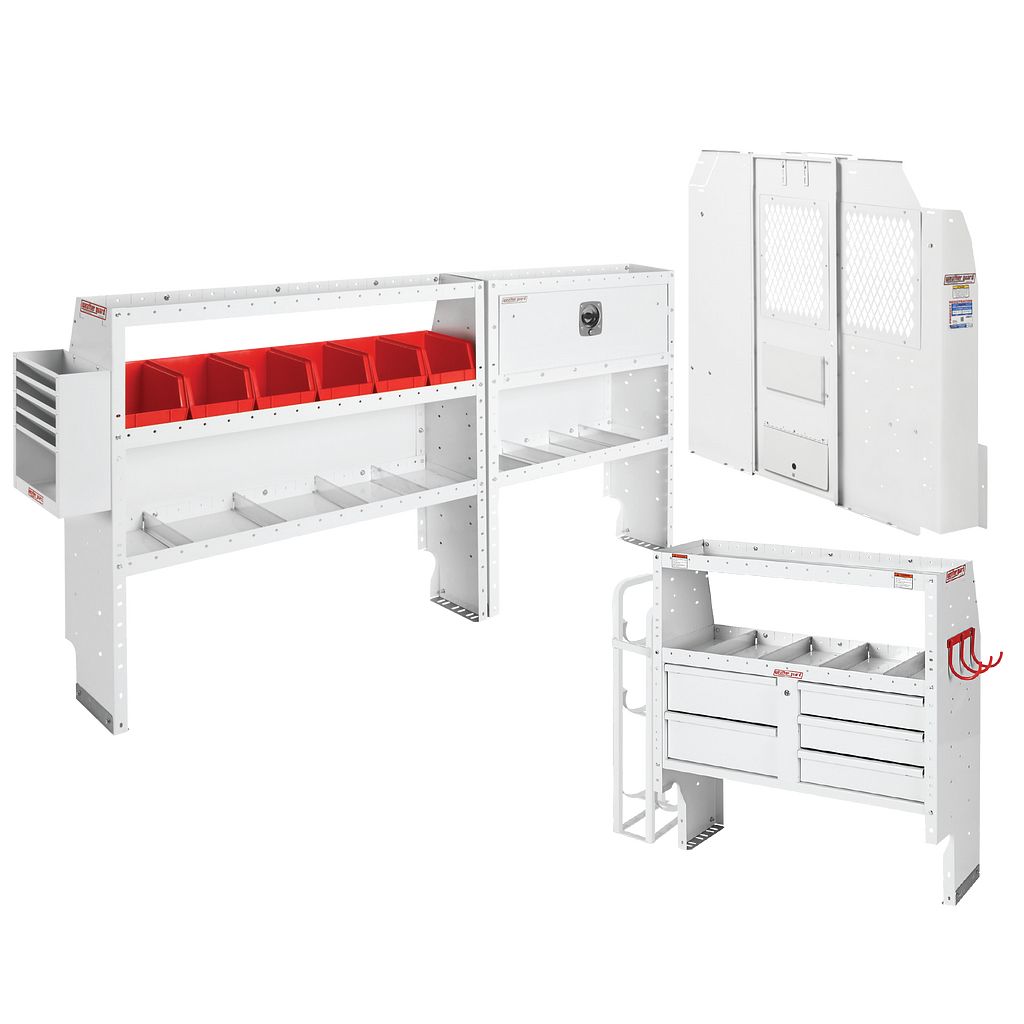 Includes everything you need for a complete upfit package, including bulkhead, driver/passenger side shelving, accessories, and installation kit all crafted specifically for your trade.